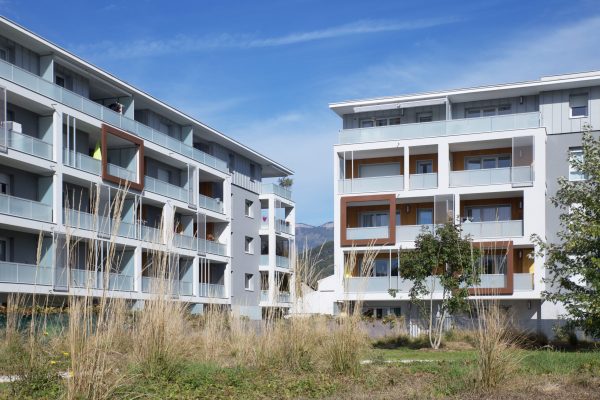 Implantée sur un site rare révélant un vaste espace ouvert sur un panorama unique à 360°. C’est sur les berges de la Leysse, à la limite sud de la commune de Bassens, au cœur d’un quartier résidentiel à taille humaine, qu’a été construit « Bassens Côté Sud », écoquartier pensé par l’architecte Patriarche.