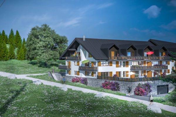 Une petite résidence de standing au pied des pistes de ski et de randonnée, alliant charme et confort, été comme hiver. Un succès commercial.